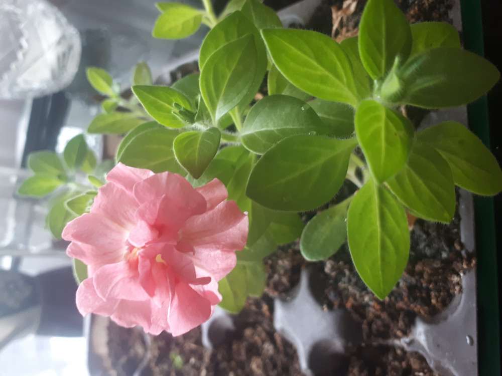 Сеяла в конце февраля, всходы через неделю, пикировка через 20 дней. Цветок не очень крупный и скорее розовый, а не красный. При большом количестве цветов тоже красиво!