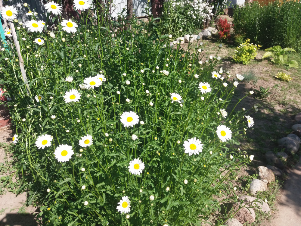 Цветет симпатично, конечно, но вот только ни разу не гигант, цветы среднего размера, как у простой ромашки: