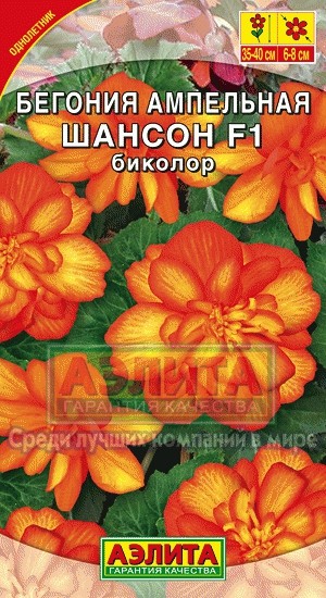 Аэлита Семена. Бегония ампельная «Шансон F1» биколор, 10 штВ данный момент этот товар отсутствует в продаже. Возможно, у нас найдется аналогичный или похожий товар здесь. Серия: Драже в пробирке Восхитительная ампельная бегония с махровыми и полумахровыми камелиевидными цветками. Имеет от 5 до 8 основных побегов 35-40 см длиной. Цветение обильное и продолжительное, цветки крупные, уникальной двухцветной окраски. Изящно изогнутые стебли особенно эффектно смотрятся в вазонах, кашпо и в подвесных корзинах – везде, где выгодно подчеркивается ампельная форма растений. Растения декоративны круглый год, поэтому бегонию часто выращивают как многолетнее комнатное растение. Растения образуют крупные клубни, которые можно сохранить до следующего сезона. Предпочитает светлые или полутенистые места, почву, богатую органикой, а также постоянное увлажнение. |