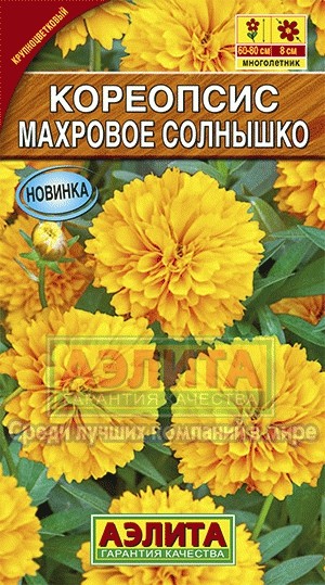 Аэлита Кореопсис «Махровое солнышко», 0,1 гВ данный момент этот товар отсутствует в продаже. Возможно, у нас найдется аналогичный или похожий товар здесь. Серия: Многолетние цветы (Аэлита) Густомахровый, многолетний, обильноцветущий кореопсис. Стебли прямостоячие, высотой до 80 см, с крупными соцветиями Ø 6-8 см. Морозоустойчивый, в средней полосе зимует без укрытия. Предпочитает в меру сухие, солнечные участки почвы среднего плодородия. Используется в сборных цветниках, высоких бордюрах. Подходит для срезки. |