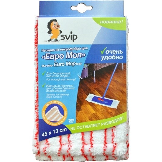 Svip Насадка из микрофибры «Евро МОП»В данный момент этот товар отсутствует в продаже. Возможно, у нас найдется аналогичный или похожий товар здесь. Насадка предназначена для влажной уборки полов. Великолепно собирает пыль и грязь, впитывает влагу, не оставляет разводов. Материал - микрофибра. Насадка имеет универсальный размер 45х13 см, подходит к стандартным швабрам «Евро» МОП. |