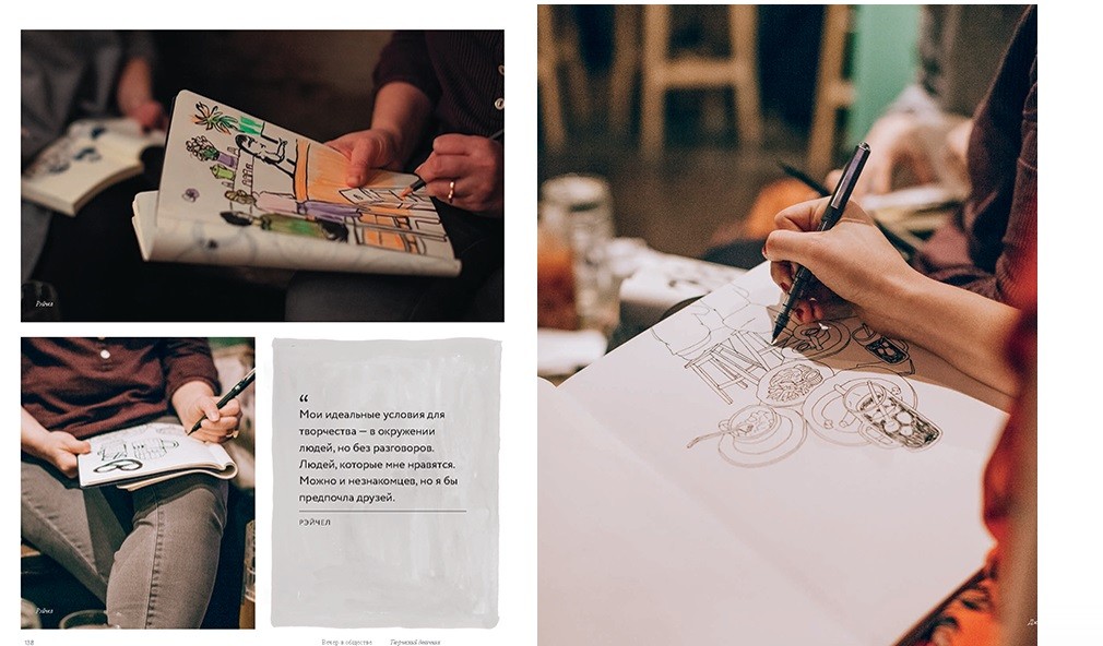 На заказ или для себя мы обычно работаем дома, в офисе или мастерской, в знакомой обстановке и окружении родных и друзей. Выход в свет дает возможность порисовать с натуры и найти неожиданные объекты для изображения.