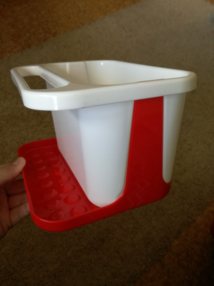 Удобный органайзер для всякой утвари. Все как на фото. Красная часть съёмная, так что можно мыть.