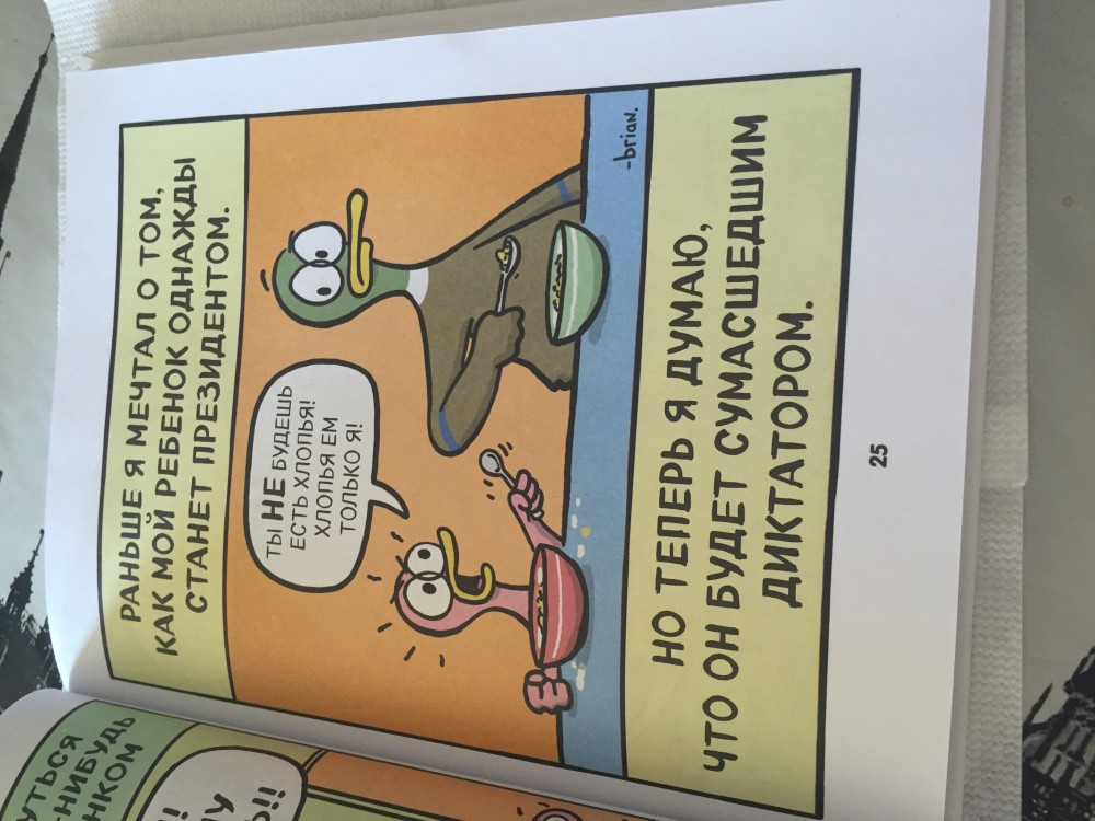 Хорошая книга. Отличного качества. Вызвала огромный интерес у моего 6-летнего сына, хотя для него эти истории ещё рановаты. Но попробуй оторвать, когда картинки такие яркие, а диалоги короткие и забавные! Перечитал Ее уже несколько раз. Описаны ситуации, которые, наверное, происходят в каждой семье, где есть дети. Зачёт от нашей семьи!))