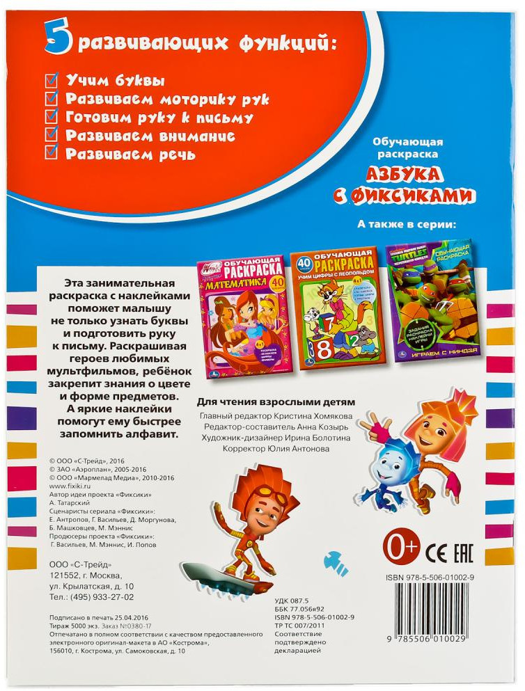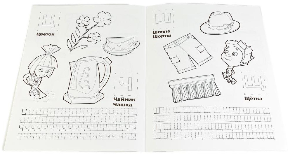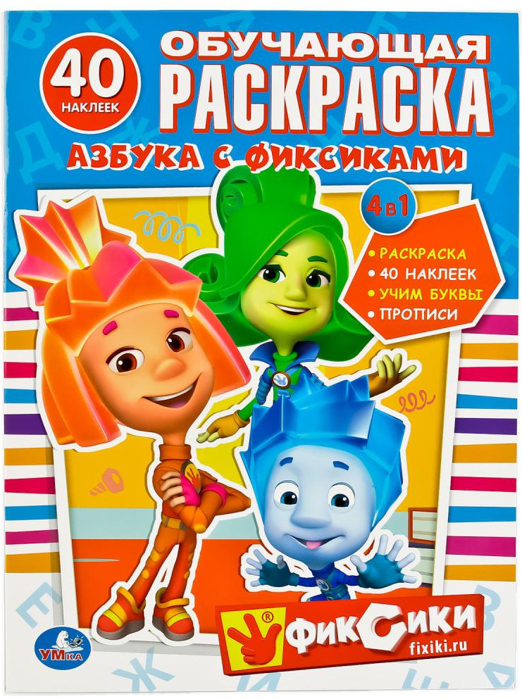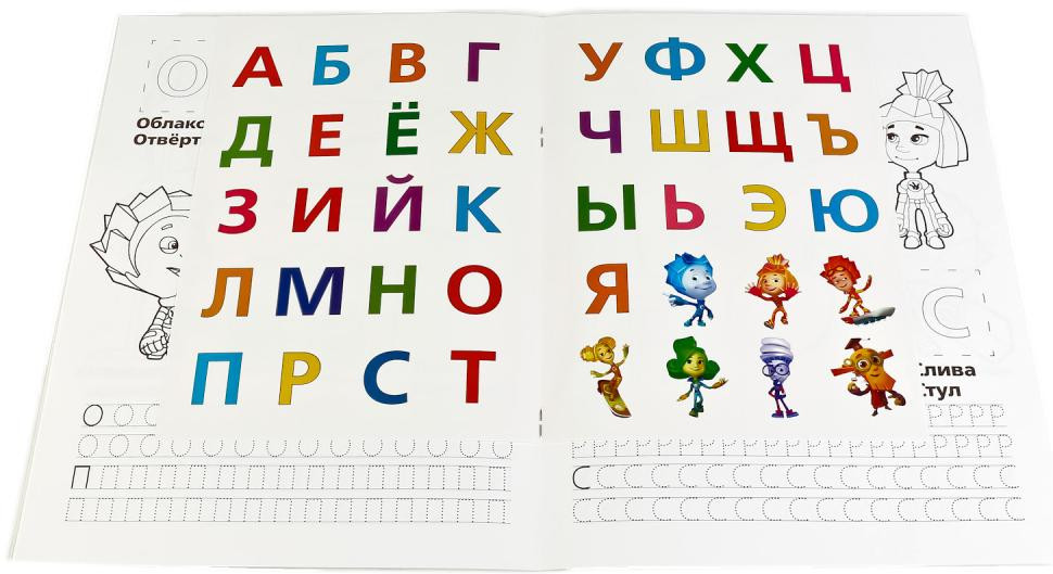 Классная азбука раскраска! Там все понятно и изображены действительно те вещи которые малыш видит в обиходе каждый день. Например будильник, чашка, йогурт, сотовый телефон и т.д. А не просто гусь, дом, флаг, щука. Я в восторге от азбуки, она продуманная так же как и мультик. А еще есть наклейки внутри со всеми буквами и всеми фиксиками. Обложка плотная и гладкая. Страницы белые и тоже плотные. Добротная тетрадь А4 размера.