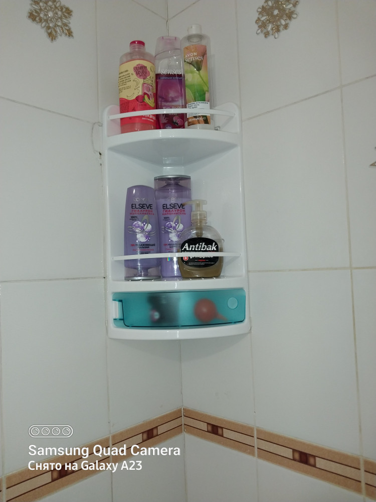 Полочки классные, но выпадают пластиковые палочки, которые поддерживают шампунь. Пришлось заклеить китайским клеевым гелем. Надеюсь, не выпадут больше! А так, полочки очень красивые!