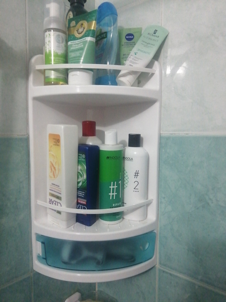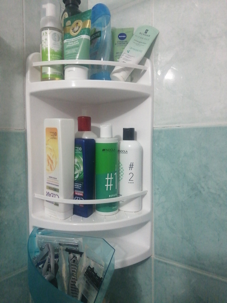 Хорошая полочка для ванной.Хотела именно пластиковую,чтобы ничего не ржавело.Места достаточно для шампуня и геля.Внутренняя полка тоже вместительная,можно бритвенные принадлежности положить.Спасибо Флип,угадал мое желание.