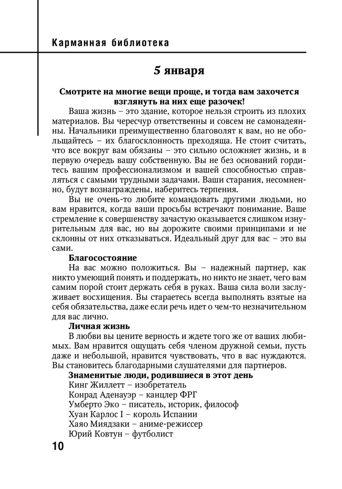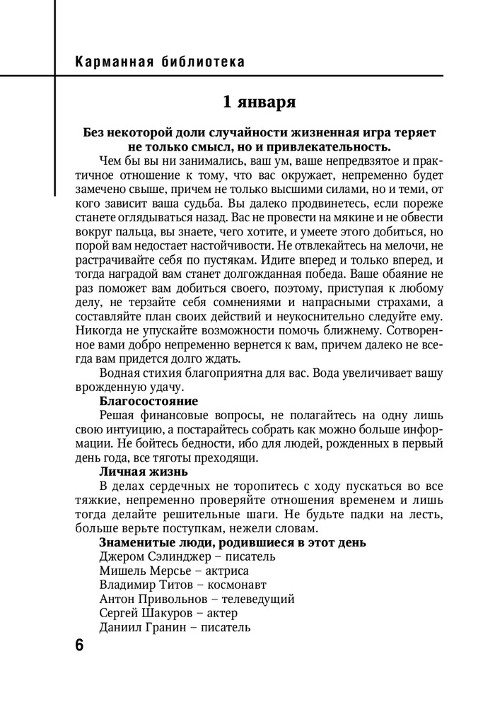 В данный момент этот товар отсутствует в продаже. Возможно, у нас найдется аналогичный или похожий товар здесь. Серия: Карманная библиотека Эта книга поможет вам лучше понять себя и узнать, как распорядиться своими достоинствами и компенсировать недостатки.