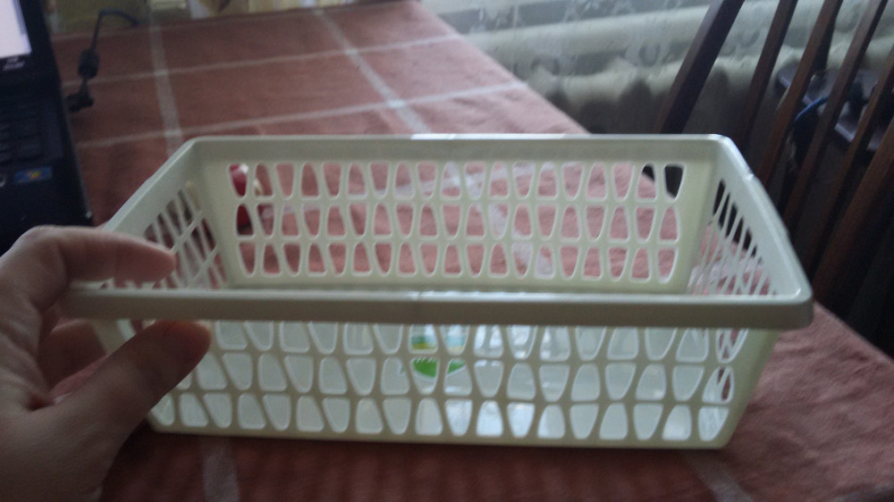 Хорошая корзинка. Для хранения специй, пакетиков с кошачьим кормом, либо какой-нибудь мелочевки. Тяжелое класть нельзя. Пластик очень тонкий, гнется. Качество на свою цену.