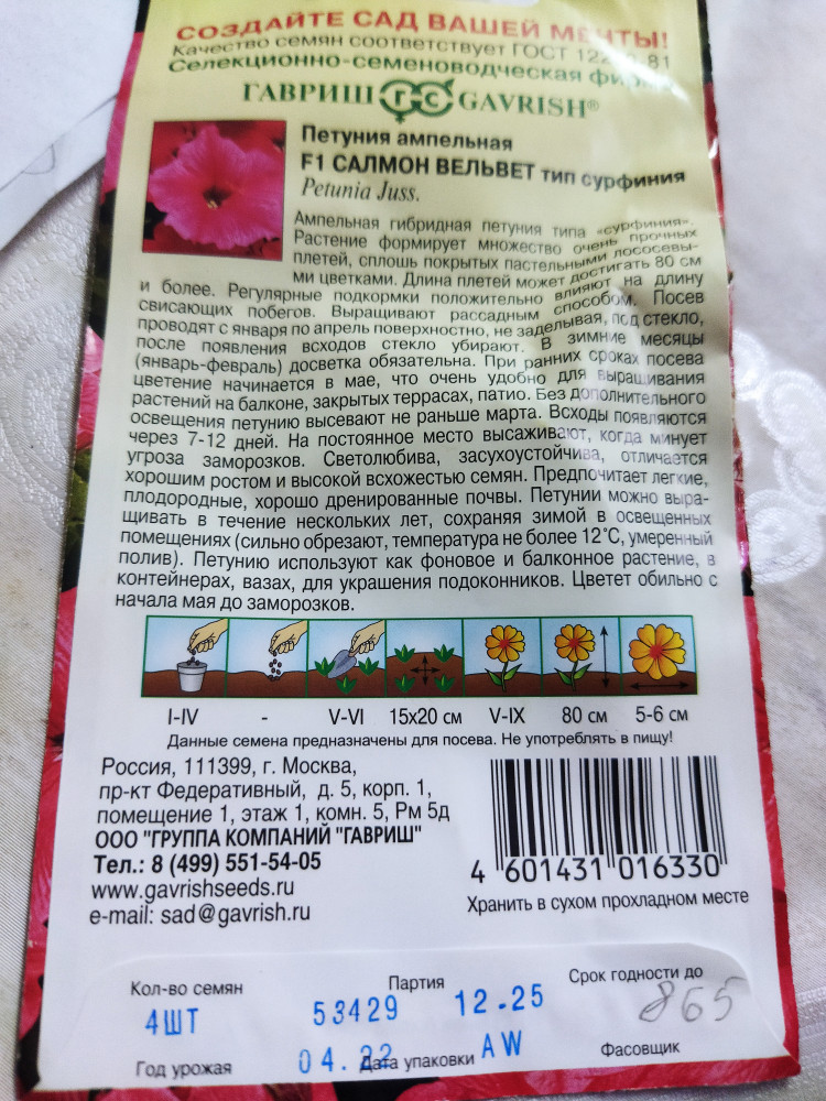 Гавриш Семена. Петуния ампельная «F1 Салмон Вельвет (Сурфиния)», 5 шт+43 высокая всхожесть красивый цвет крепкие ростки неоднородная всхожесть