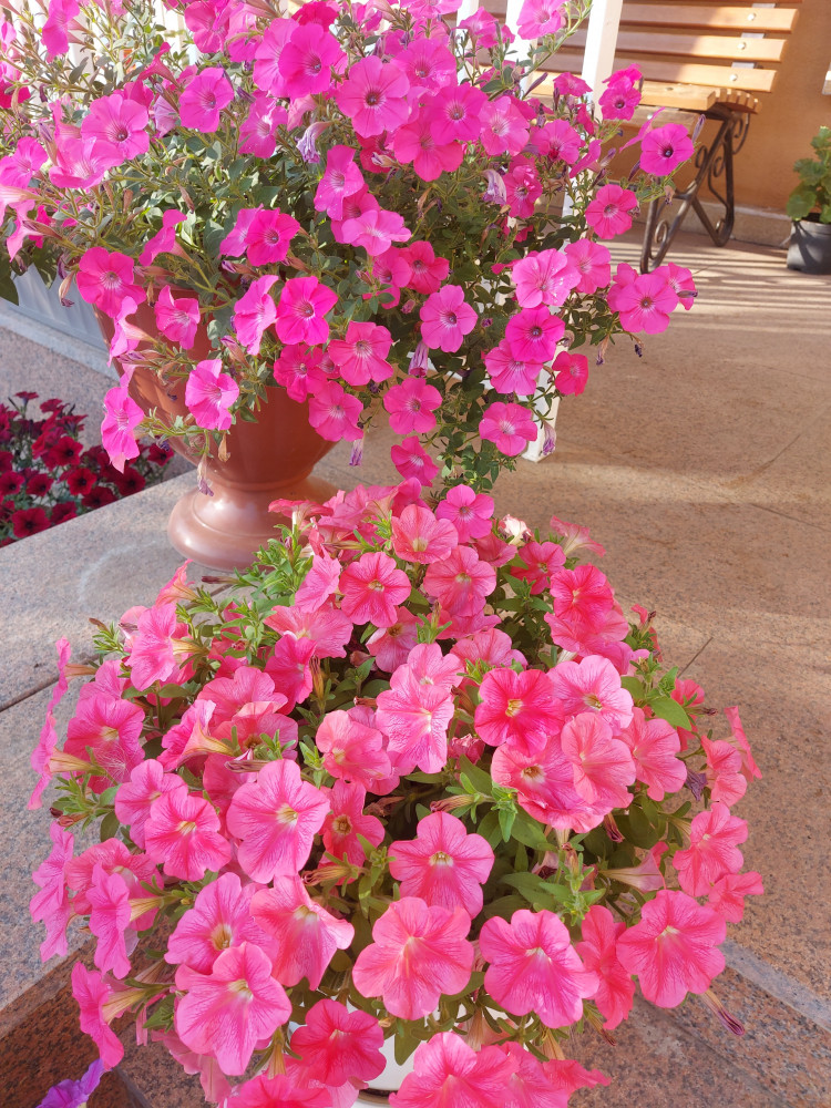Самая длинноветвистая и мощная ампельная петуния, которая будет соответствовать заявленным характеристикам при большом объёме питания, то есть грунта и подкормкам и т.п. Молодому растению нужна прищипка, в середине лета - стрижка.