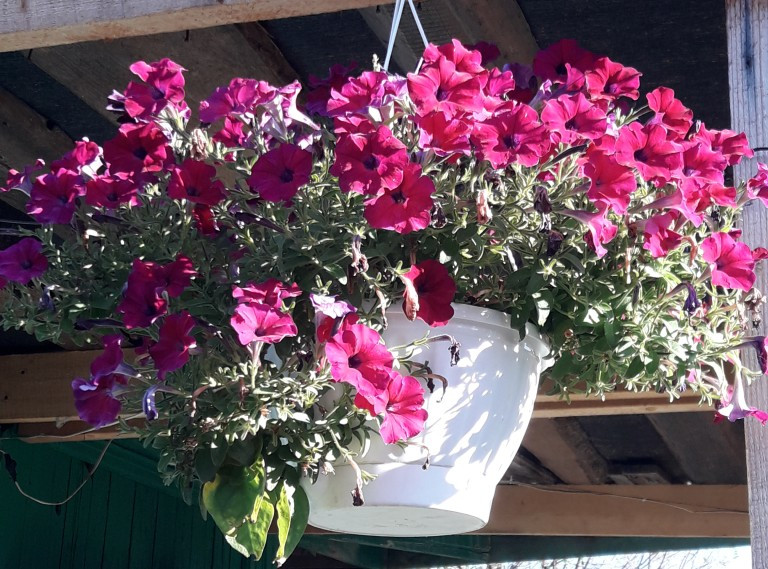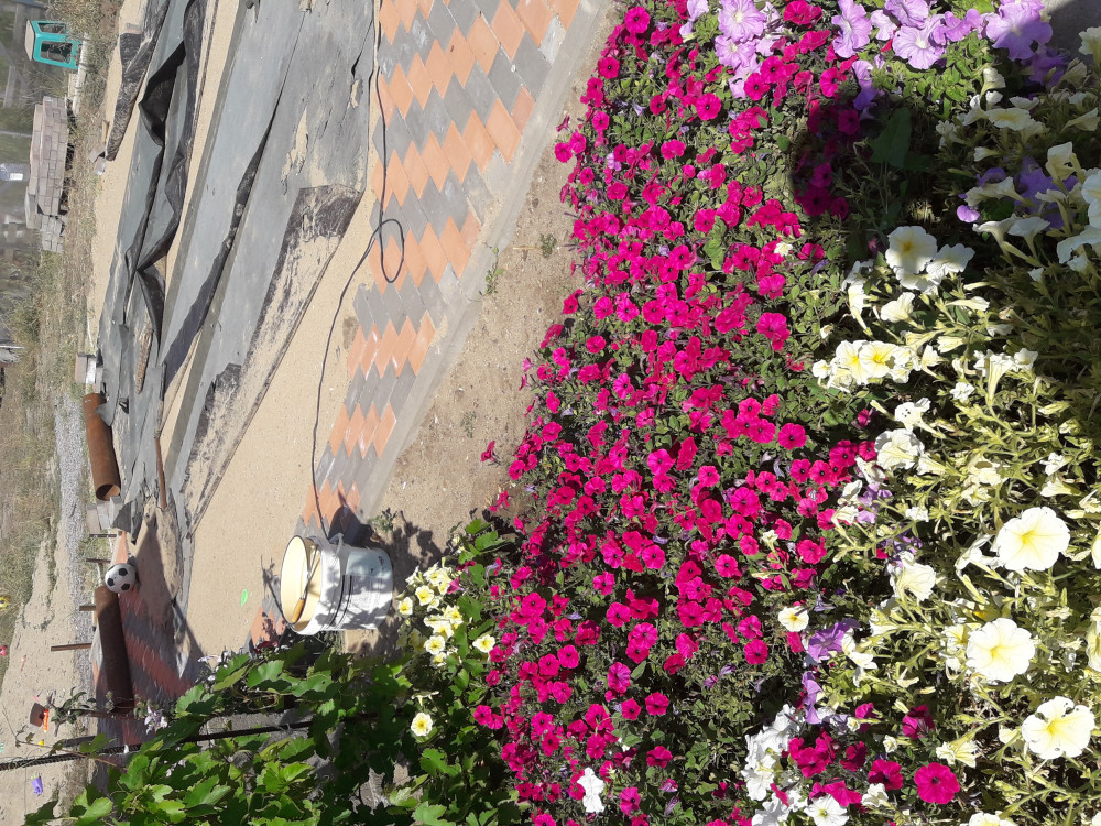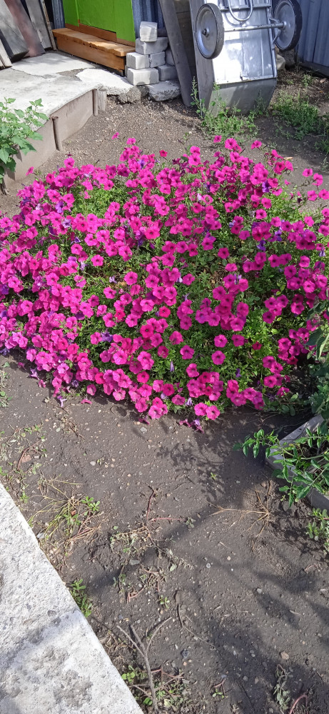 Так выглядит петунья на 01 августа, растёт на солнце. Петуньи, посаженные в тени, не так пышны. Рассаду не прищипывала ни разу для пышности.