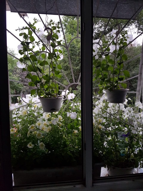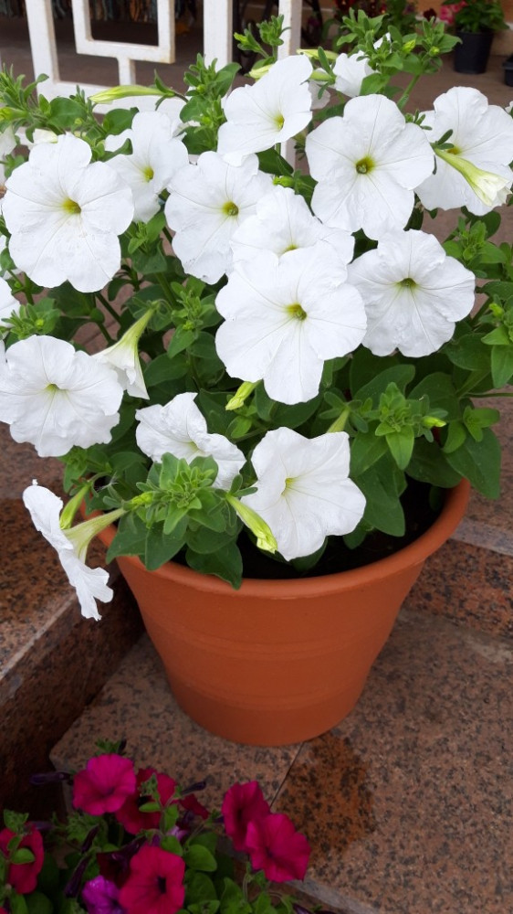 Огромный куст, белоснежные огромные цветки. На фото одно растение в 11 литровом горшке. Взошла быстрее всех, всходят все семена.