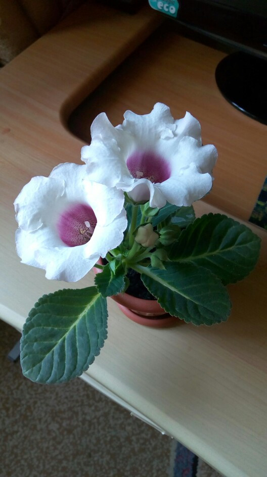 Разочарована, вместо того, что обещал производитель, зацвела вот такая глоксиния.