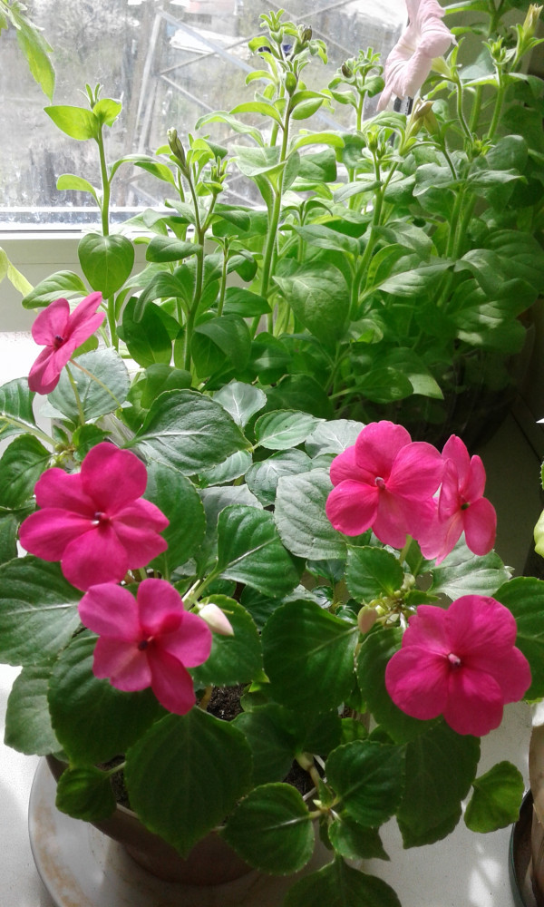 Вот так цвёл наш бальзамин в 2019-ом.Посадила 3 семки и все взошли. Всё лето цвели!