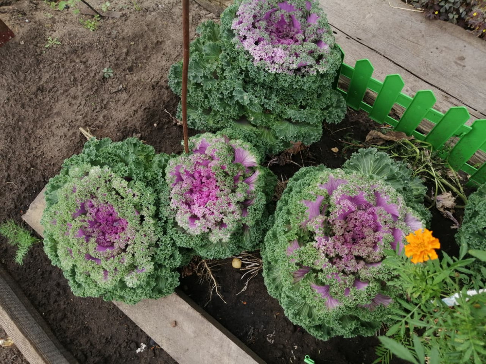 вместо цветов сделала капустные цветники.