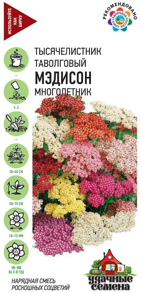 Гавриш Семена. Тысячелистник «Мэдисон», смесь, 0,1 г+10 красивые цветы пышные кусты низкая всхожесть