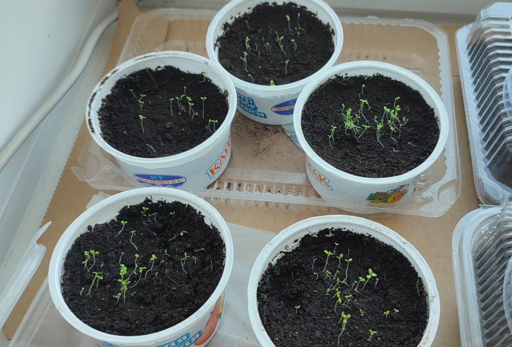 Всхожесть отличная. Одну упаковку семян разделила на 5 баночек, когда подросли сразу без пикировки перевалила в кашпо.