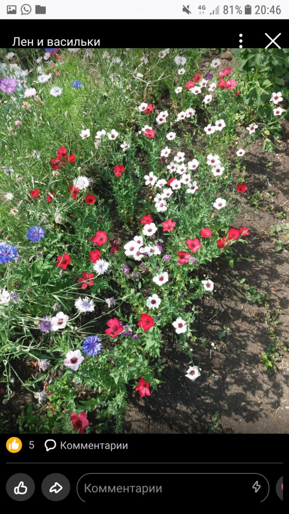 Я живу в Павлодарской области. Семена посеяла сразу в грунт. Земля сухая, неплодородная. Я полила, взрыхлила маленькими грабельками, посеяла и снова полила. Взошел прекрасно. Цвёл практически все лето. Общее впечатление: чудесное нежное облако цветов. Кое-где единичные цветочки были красными, но меня это не смущает. Из ухода был только полив 1-2 раза в неделю. Если был дождь, то не поливала. Лето было жарким, сухим. В сентябре цветов стало меньше, начал отцветать. Я была очень рада, что посеяла этот ленок, вот только жаль, что под зиму не посеяла. Буду заказывать его ещё, уж очень понравился!