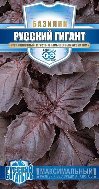 Гавриш Семена. Базилик «Русский гигант» фиолетовый, 0,3 г+11 всходы аромат листья крупные высокие кусты масса семян