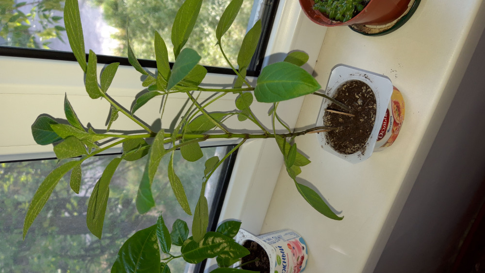 Из 5 семян взошло только одно, но крепенький такой росточек. Посмотрим что дальше будет. У детей куча восторгов от этой экзотики и большие ожидания!