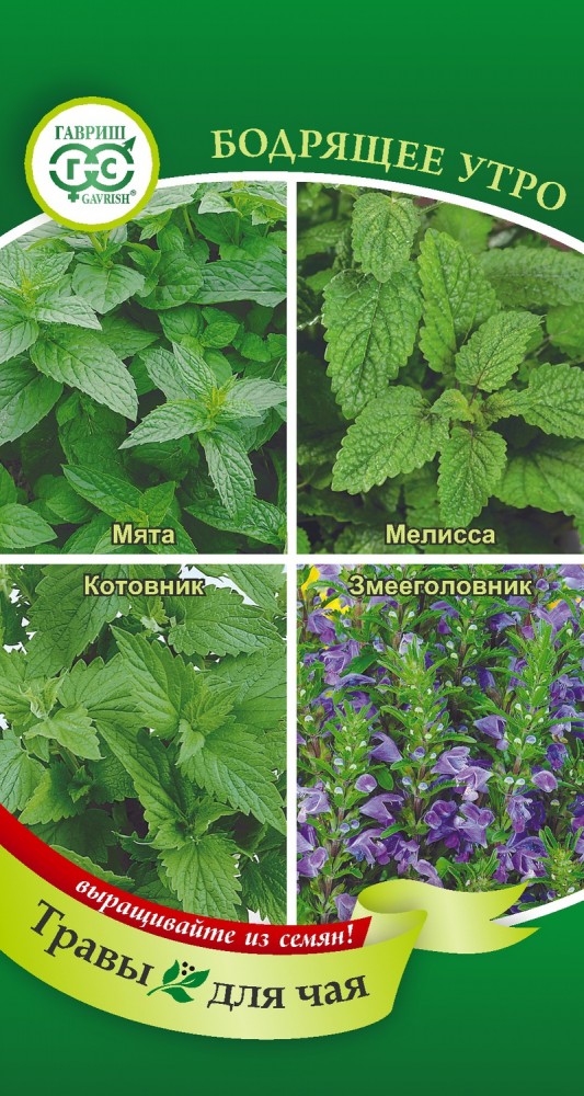 Гавриш Семена. Травы для чая «Бодрящее утро», 0,3 г+14 мелисса взошла быстрая всхожесть низкая всхожесть