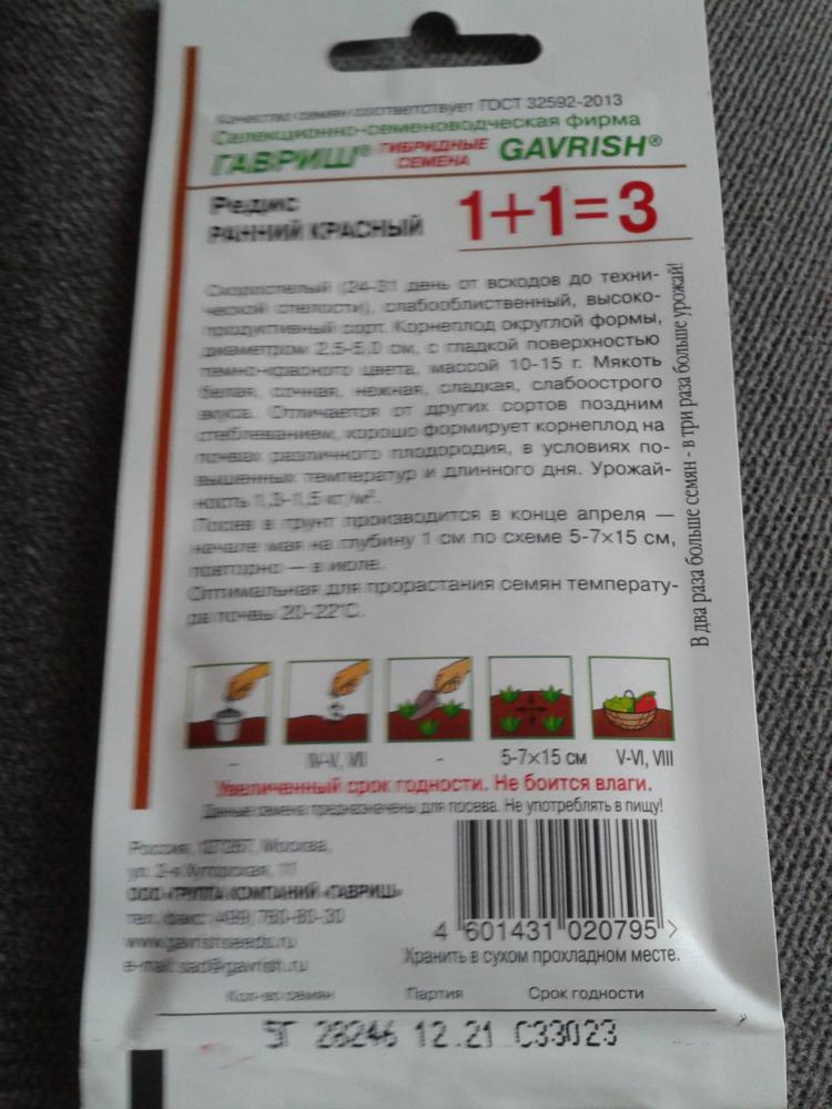Гавриш Семена. Редис «Ранний красный», 5 г+4 хрустящие крепкие вкусные