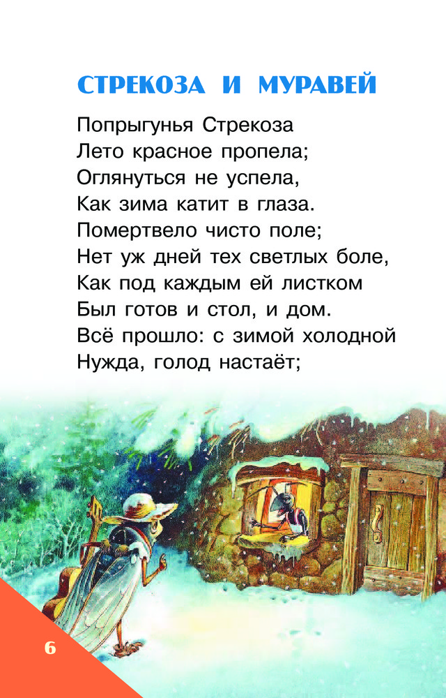 В данный момент этот товар отсутствует в продаже. Возможно, у нас найдется аналогичный или похожий товар здесь. Серия: Книжная полка «Малыша» В книгу «Стрекоза и Муравей» вошли басни И.А. Крылова «Ворона и Лисица», «Волк и Ягнёнок» и басни Эзопа «Упрямые козы», «Лиса и Журавль», «Волк и Журавль» и другие. Прочитав интересную историю о Волке, Вороне, Обезьяне и других животных, ребёнок незаметно для себя усвоит урок, сокрытый в них, и обязательно вырастит умным, честным и трудолюбивым!