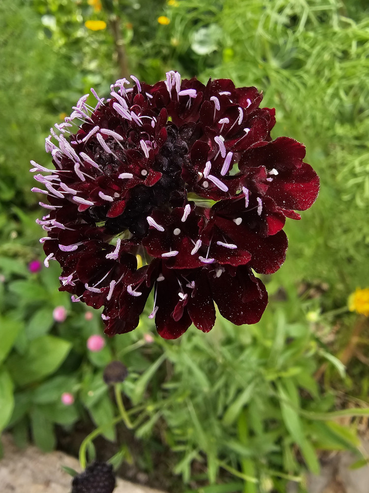 Гавриш Семена. Скабиоза пурпурная «Чёрное манто»тёмная окраска длительное цветение семенные коробочки много цветоносов неравномерная всхожесть