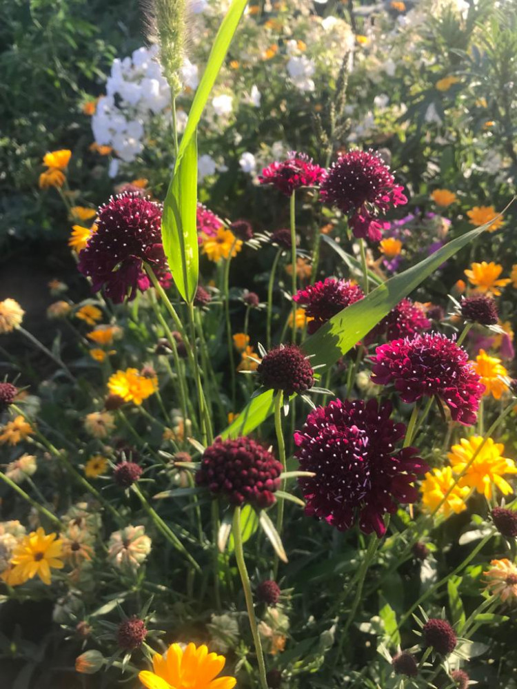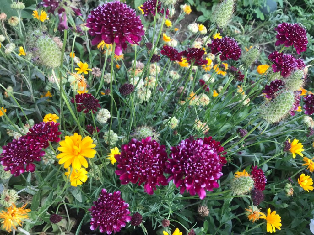 Скабиозу сажала только белую, цветет она не очень красиво, небольшие цветочки, как буклированные. Но куст очень разрастается, очень много цветоносов на нем, и цветет продолжительное время, до глубокой осени. Поэтому клумба всегла декоративная с этим цветком. А если еще и такого чудесного цвета, представляю, какая красота будет!