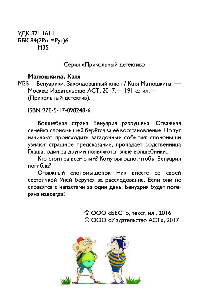 Серия: Прикольный детектив Волшебная страна Бенуария разрушена. Отважная семейка слономышей берётся за её восстановление. Но тут начинают происходить загадочные события: слономыши узнают страшное предсказание, пропадает родственница Глаша, один за другим появляются злые волшебники... |