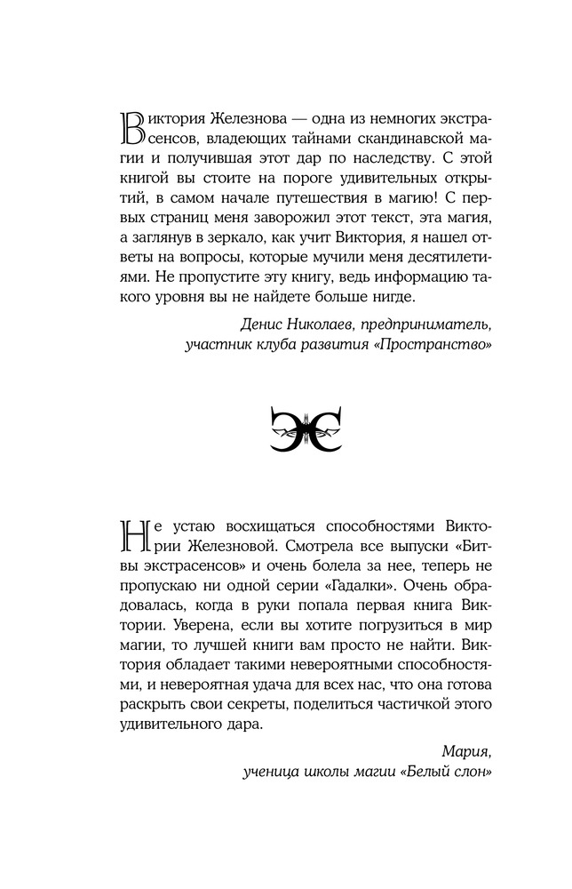 В данный момент этот товар отсутствует в продаже. Возможно, у нас найдется аналогичный или похожий товар здесь. Серия: Элита Экстрасенсов Виктория Железнова — экстрасенс, таролог, астролог, потомок скандинавских магов, главный эксперт сериала «Гадалка» на ТВ-3, финалистка третьего сезона популярного телевизионного шоу «Битва экстрасенсов».