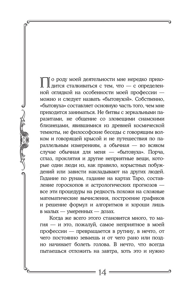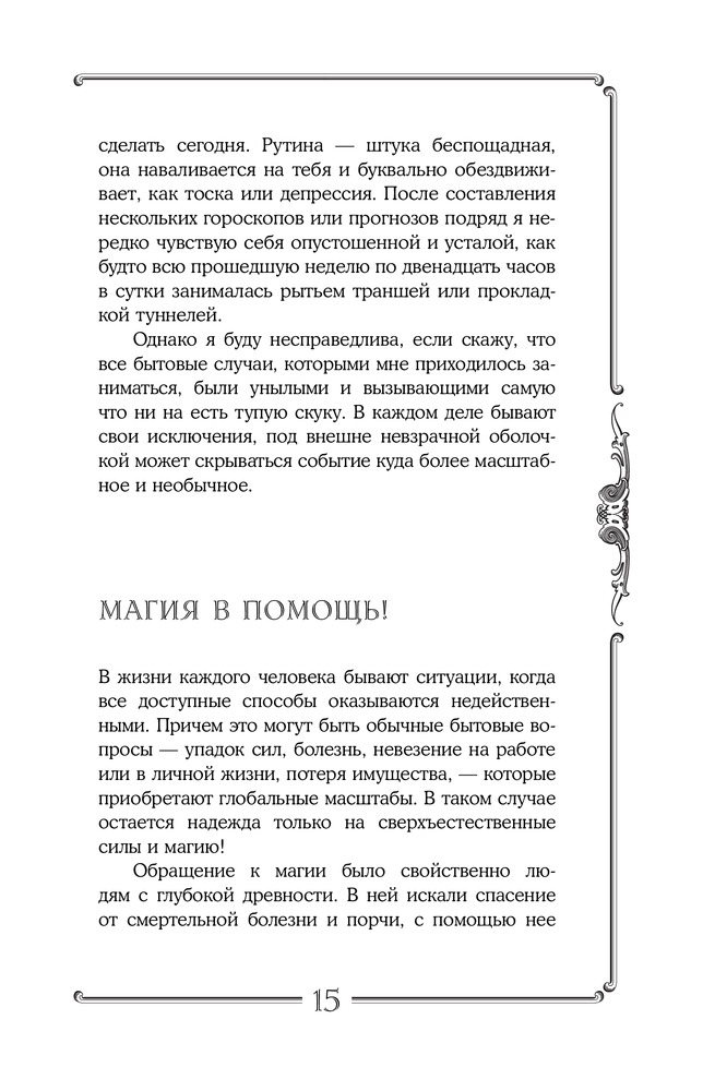 В книге вас ждет магия высокой пробы. Прежде чем открыть эту книгу, подумайте, какую проблему вы хотели бы решить, потому что сам процесс чтения будет менять вас и вашу жизнь! Текст книги активизирует ваше подсознание в нужном русле. Вас ждут удивительные сны, неслучайные совпадения и в итоге — интуитивное озарение, которое поможет решить вашу проблему. В книге вы также найдете удивительные истории магического влияния и, конечно же, ритуалы, которые помогают находить выход тогда, когда все остальные средства бессильны.