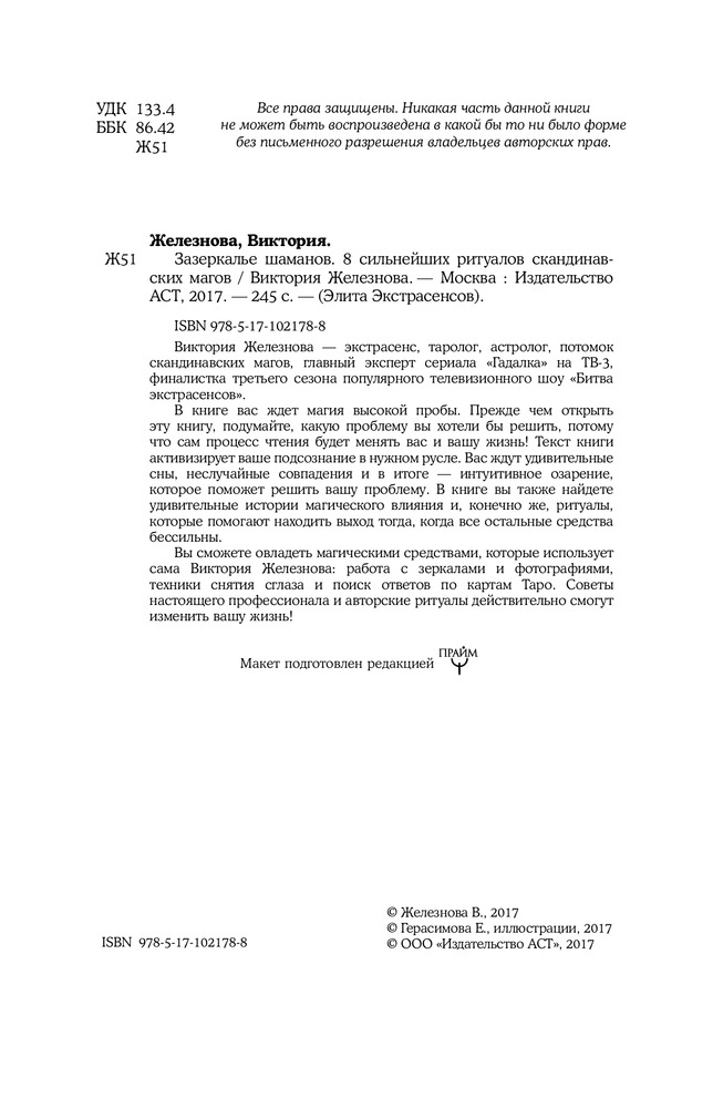 Вы сможете овладеть магическими средствами, которые использует сама Виктория Железнова: работа с зеркалами и фотографиями, техники снятия сглаза и поиск ответов по картам Таро. Советы настоящего профессионала и авторские ритуалы действительно смогут изменить вашу жизнь!