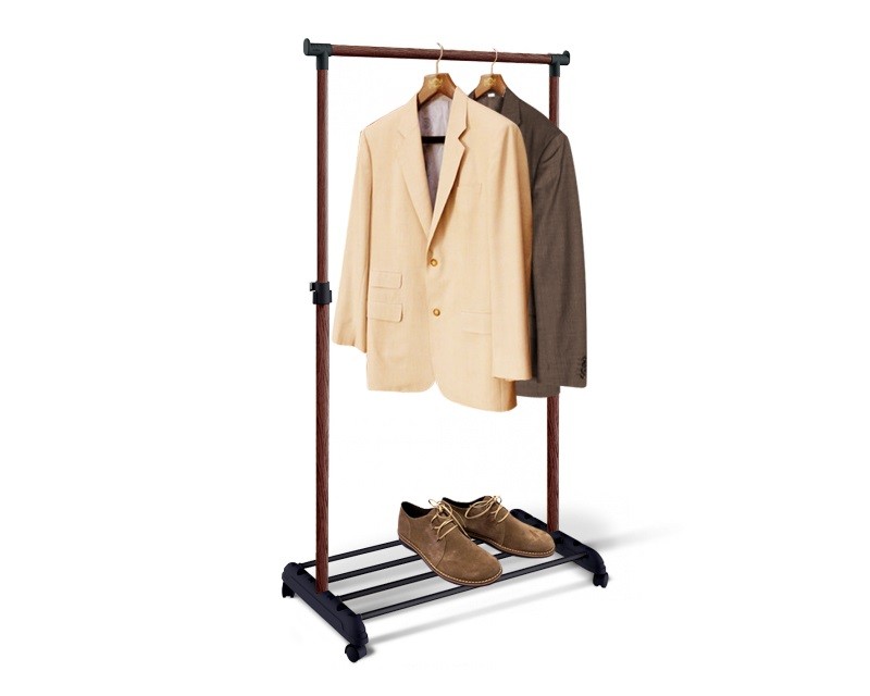 Удобная вешалка, когда в шкафу уже нет места. Недостаток, что вертикальные штанги немного качаются.