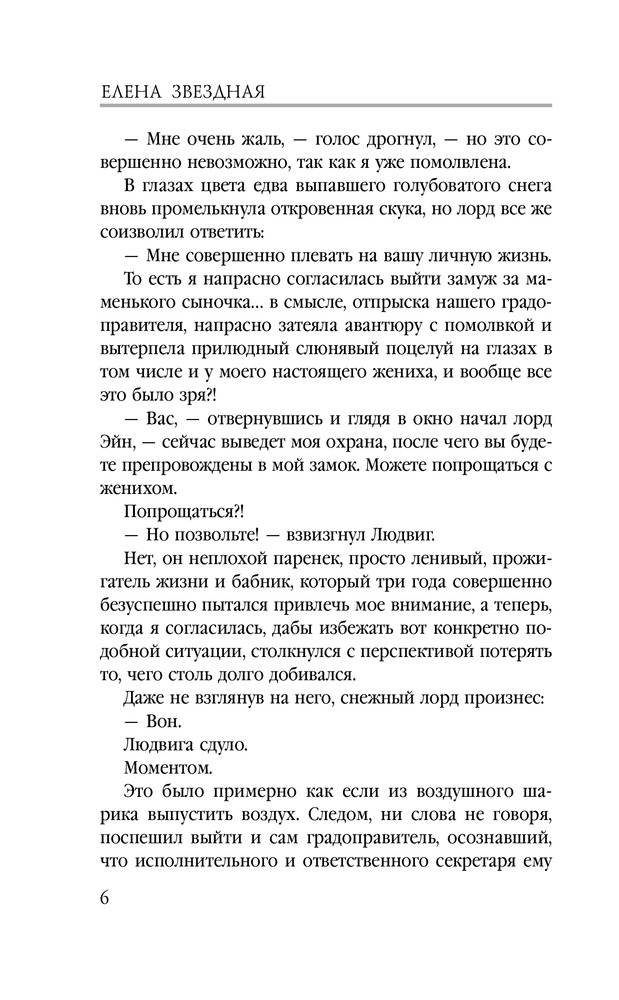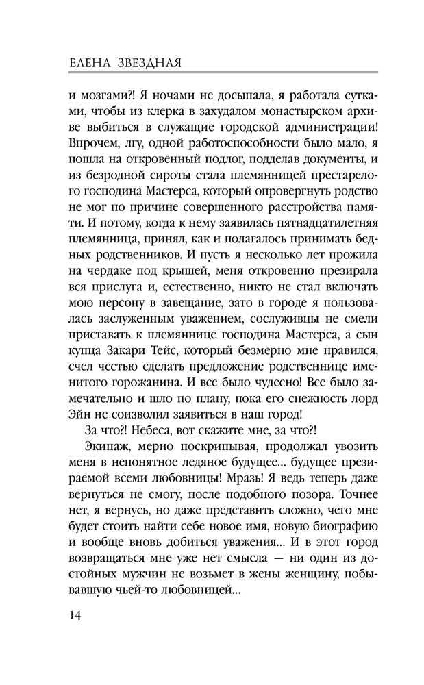 | Современная российская писательница, автор книг в жанре любовного фэнтези и боевой фантастики. Биографические сведения о жизни Елены Звездной крайне скудны, однако доподлинно известно, что романистка родилась 22 ноября 1981 года, сейчас живет в городе Тирасполе Республики Молдова, замужем, воспитывает дочь. Елена признается, что не считает себя писательницей и даже особенно не стремиться ею стать, хотя уже несколько лет успешно издает свои произведения под литературным псевдонимом Звездной, а... |