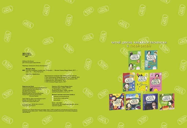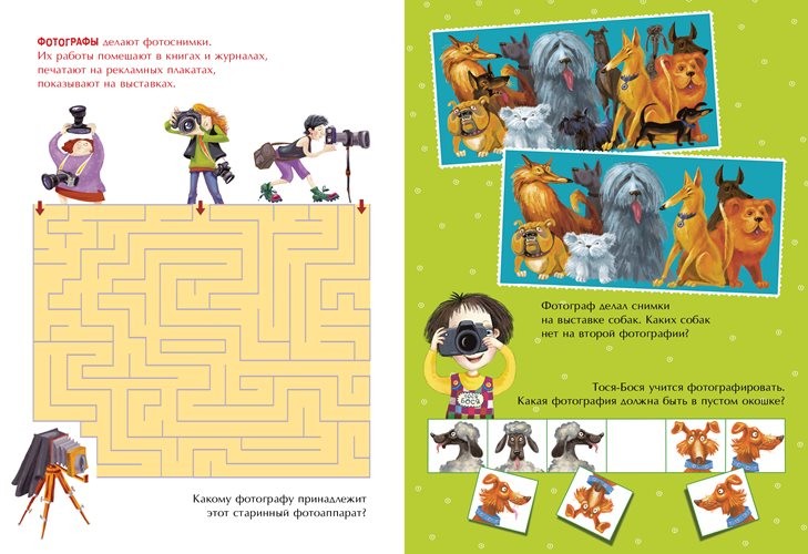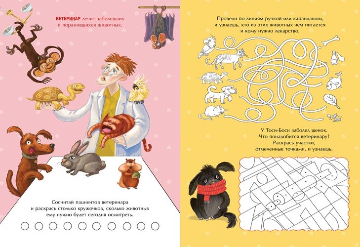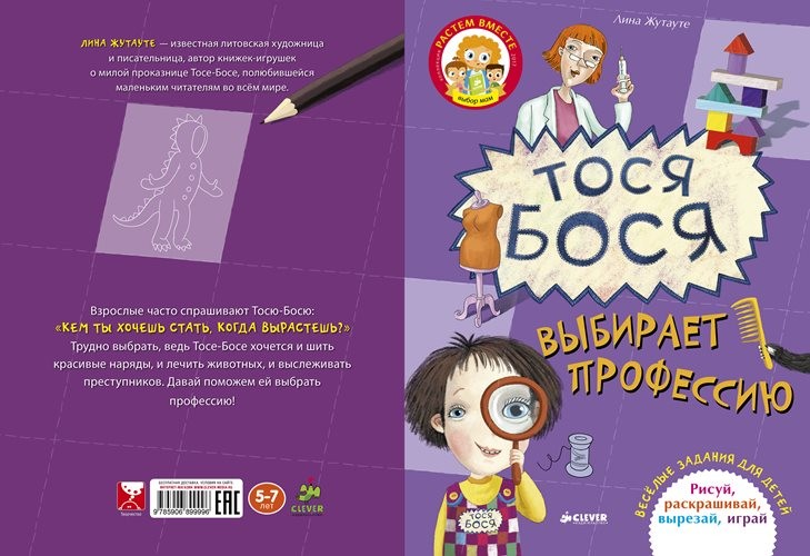 Тося-Бося выбирает профессиюВ данный момент этот товар отсутствует в продаже. Возможно, у нас найдется аналогичный или похожий товар здесь. Серия: Лина Жутауте Книжки про Тосю-Босю знают и любят все малыши. Тося-Бося — веселая непоседа, и она всегда находит что-нибудь интересненькое. В этой активити-книжке она будет выбирать профессию, а заодно расскажет малышам, кто из взрослых как работает. Ребенок узнает, кто такой доктор, — доктору Тося поможет расставить баночки с таблетками и бутылочки с микстурами, раскрашивая и считая пилюльки. Повару Тося подскажет рецепты и поможет накрыть на стол (раскладывая вилки и ножи на нужные места). Охранник банка благодаря Тосе поймает грабителей (найдет нарушителей по тени). Ветеринару нужно подсказать, что едят разные животные, распутав путаницу. Фотографу ваш ребенок вместе с Тосей-Босей поможет найти камеру, пробежав по лабиринту. |