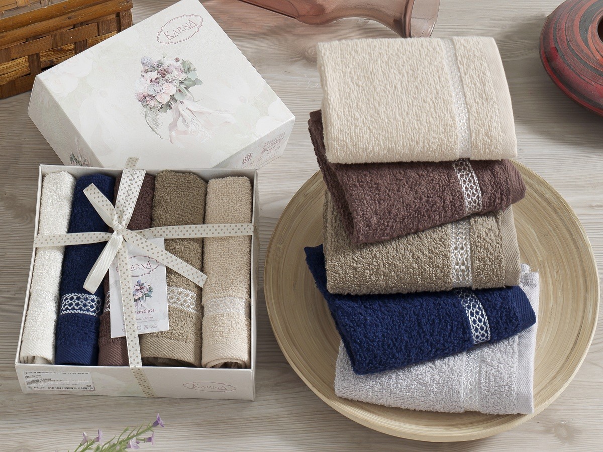 Karna Набор махровых салфеток «Konfeti» (хлопок, 30х30, 5 шт)В данный момент этот товар отсутствует в продаже. Возможно, у нас найдется аналогичный или похожий товар здесь. Серия: Konfeti Набор кухонных полотенец - незаменимый аксессуар, который не только поможет дополнить интерьер Вашей кухни, создавая особую атмосферу, но и станет прекрасным помощником для каждой хозяйки, обеспечивая максимальное удобство при эксплуатации. Выполненные из натурального хлопка, изделия идеально впитывают влагу, а благодаря высокому качеству материала они превосходно сохраняют свои свойства и внешний вид на протяжении всего срока службы. |