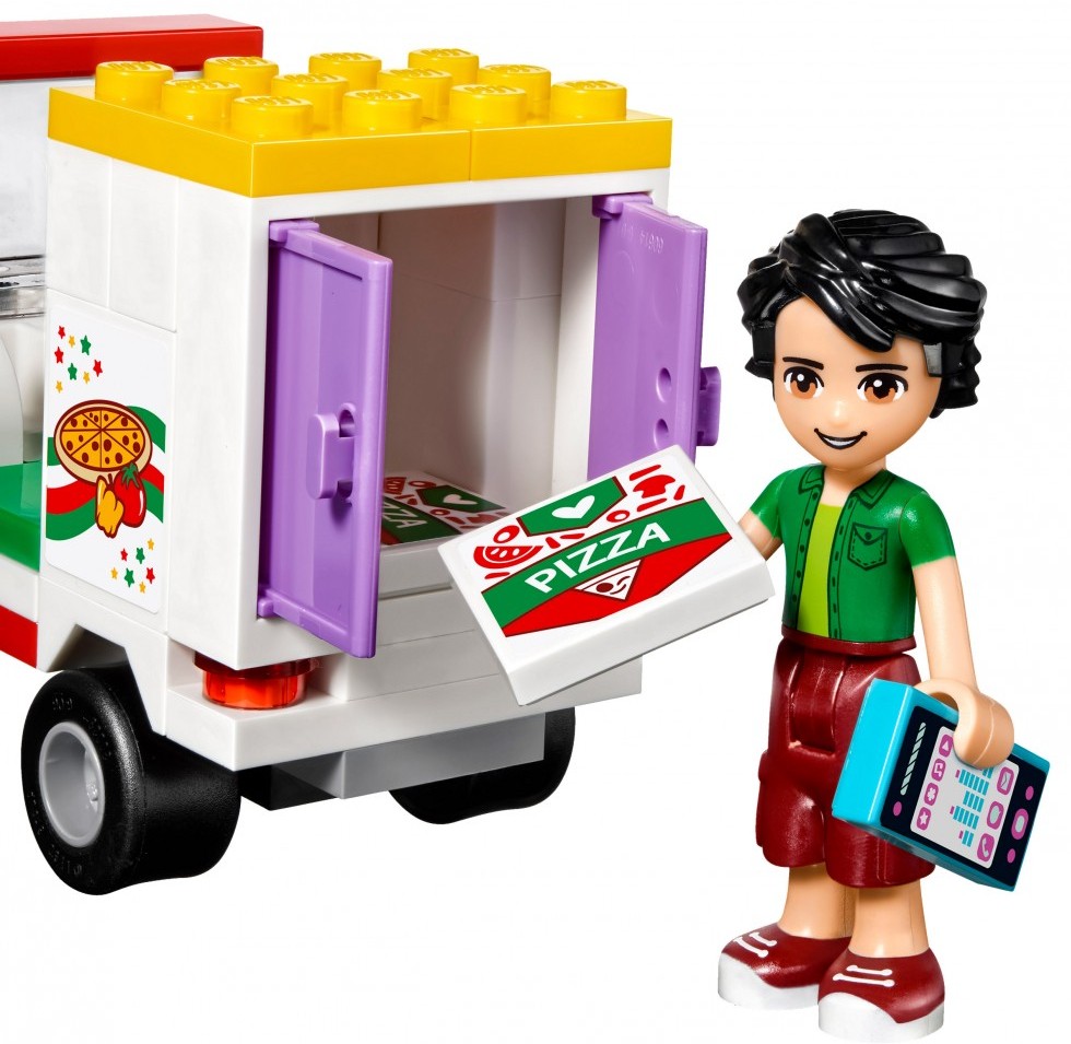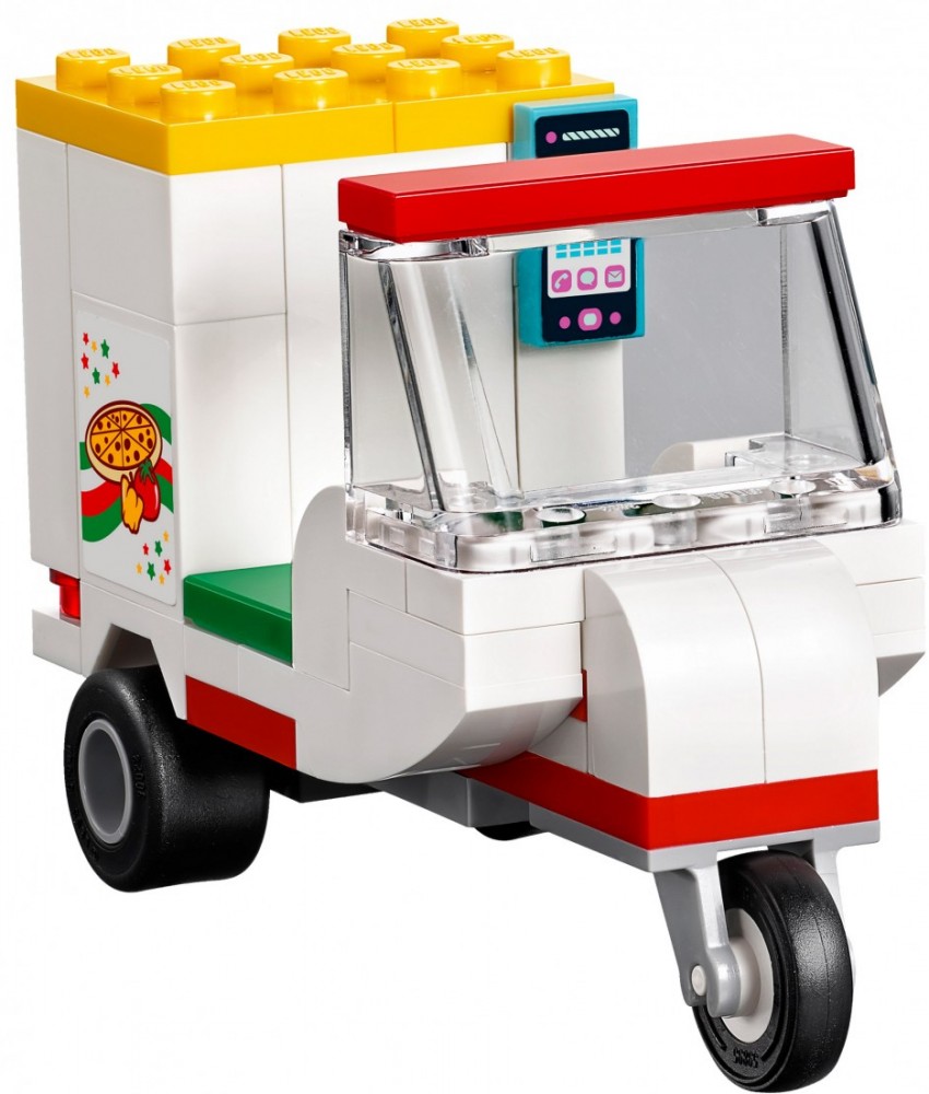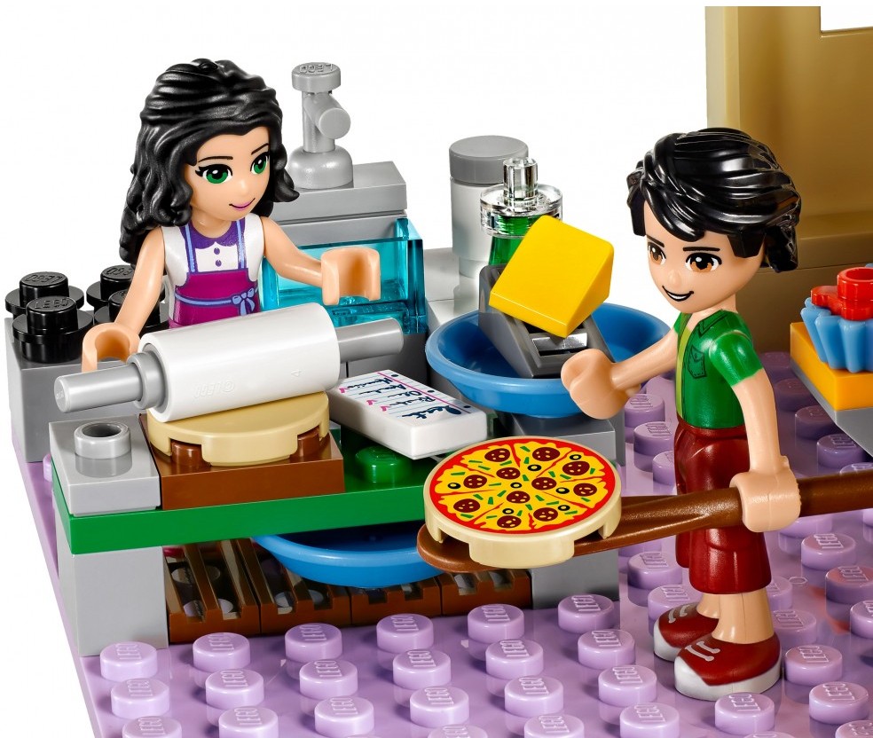 LEGO (ЛЕГО) ПиццерияВ данный момент этот товар отсутствует в продаже. Возможно, у нас найдется аналогичный или похожий товар здесь. Серия: LEGO Friends Двухэтажная пиццерия Эммы и Оливера - любимое место жителей Хартлейк Сити. Помоги друзьям угостить вкусной ароматной пиццей посетителей ресторана. Подготовься к открытию пиццерии, накрыв столы на втором этаже. Встречай посетителей и раздай гостям меню. Принимай заказы с помощью кассового аппарата, пока Эмма на кухне первого этажа раскатывает тесто, посыпает его сыром и ставит пиццу в духовку. Отнеси готовую пиццу на увитую цветами веранду второго этажа. Помоги Оливеру погрузить в скутер коробки пиццы для доставки в городе. Торопись доставить пиццу горячей! |