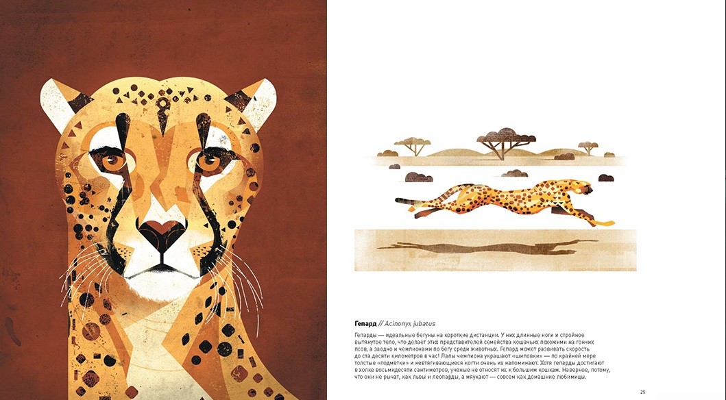 Животные ЮгаВ данный момент этот товар отсутствует в продаже. Возможно, у нас найдется аналогичный или похожий товар здесь. Серия: МИФ. Детство «Животные Юга» — это впечатляющий подарочный альбом с фантастическим плакатным иллюстрированием и фактами о животных, которые живут в Южном полушарии. Много лет иллюстратор и детский писатель Дитер Браун путешествовал по всему миру, изучая внешний вид животных, их повадки и привычки, а потом создал серию выдающихся плакатов. Вместе с автором вы окажетесь в африканской саванне, где встретите леопардов, фламинго и горилл. Пройдетесь по горной местности Азии и заглянете в тропические леса Амазонки. А в конце вас ждет сюрприз от животных с самого южного материка нашего земного шара — Антарктиды. Уникальный графический стиль Дитера Брауна вдыхает жизнь в животных на картинках. Иллюстрации отличаются выразительными линиями, яркими цветами и в то же время удивительной натуралистичностью и любовью к деталям. А новаторской стиль повествования Брауна и его неподражаемый юмор превращают сухие факты о животных в интереснейшие рассказы. |