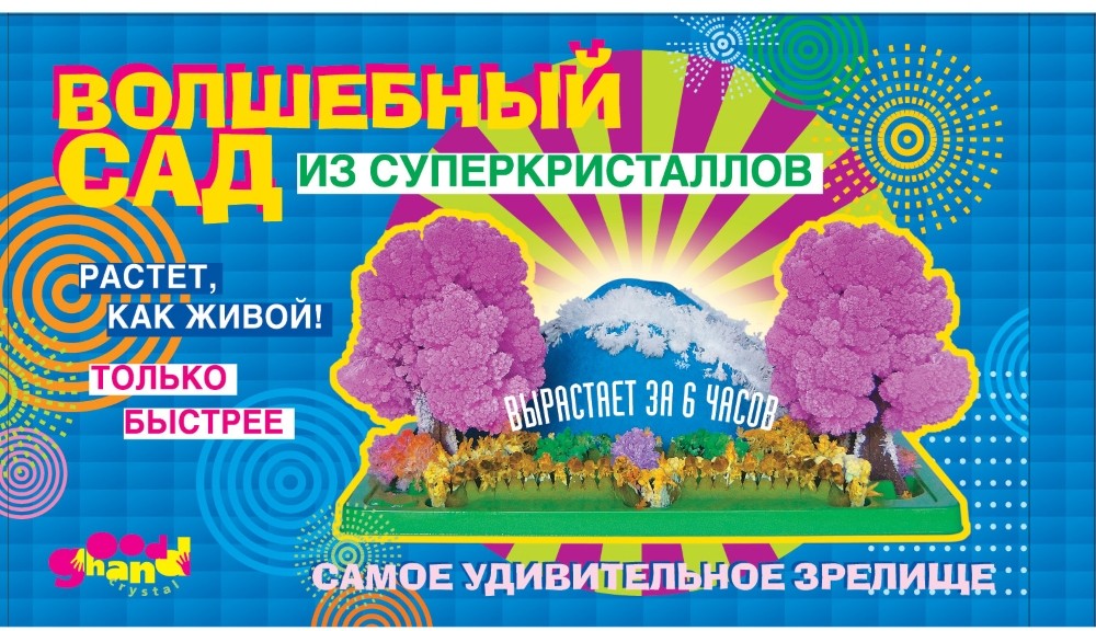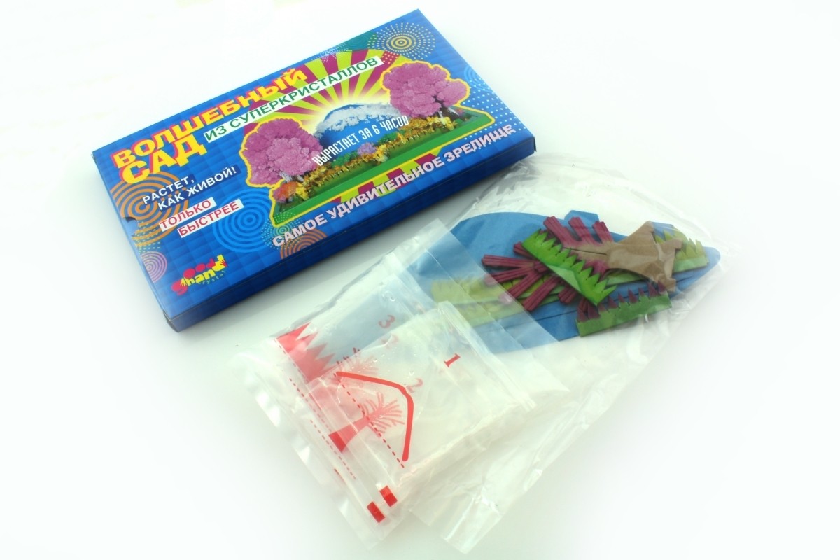Многообразие цветов, новые идеи и постоянно меняющаяся картинка в процессе роста кристаллов заставят работать детскую фантазию. Увлекательный творческий процесс по выращиванию кристаллического сада — это комплексная воспитательная терапия для любознательных деток.