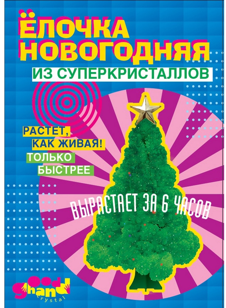 Очень интересная и познавательная елочка, малое прикосновение к химическим реакциям. Завораживает деток процесс роста этих кристаллов. Я подарила, покупала не для себя. Сказали , что кристаллы не затвердели и рассыпались. Есть фото. Там в упаковке была звездочка и блестки, но их не успели использовать. Увлекательно!