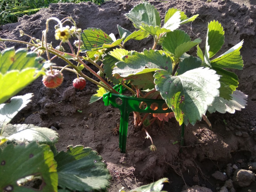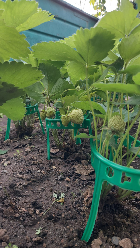 Очень хорошая вещь для клубники раньше ягодки лежали на земле и подгнивали а теперь собраны в букетик и все целые. Очень красиво смотрятся на грядке! Заказала уже пять комплектов.
