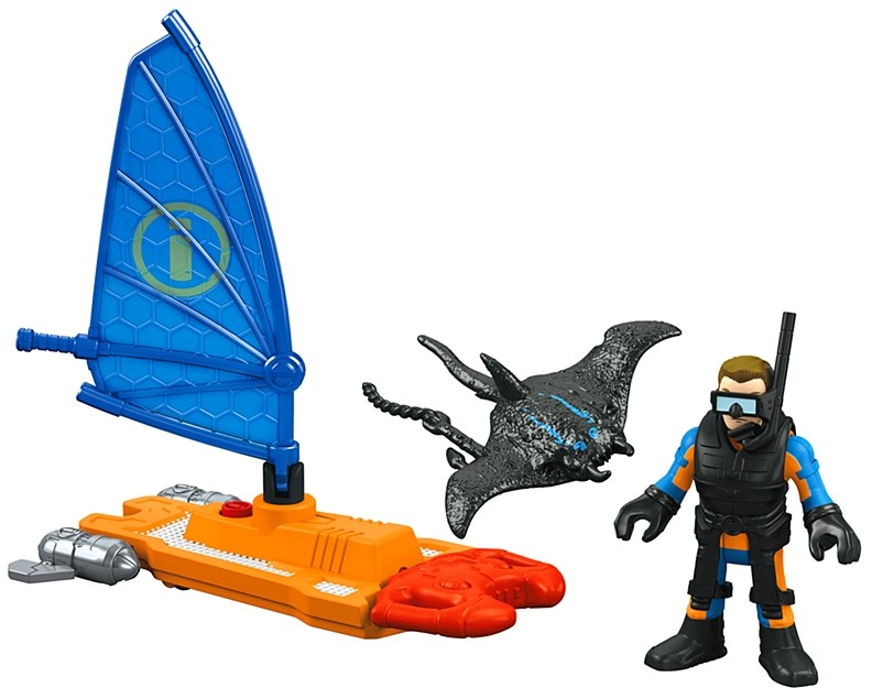 Комплект: фигурка, снаряжение ныряльщика, мини-субмарина, скат.