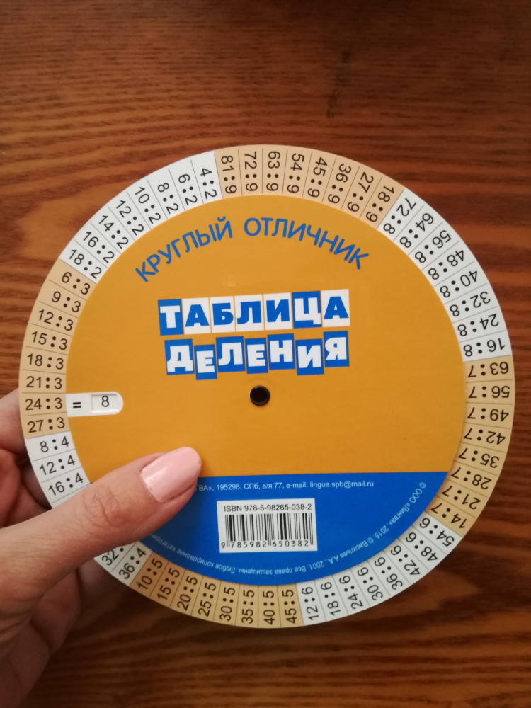 Отличная шпаргалка для изучения таблицы умножения. Сделана из картона, с одной стороны умножение, с другой деление! Заказывала для дочери второклассницы, ей очень понравилась!