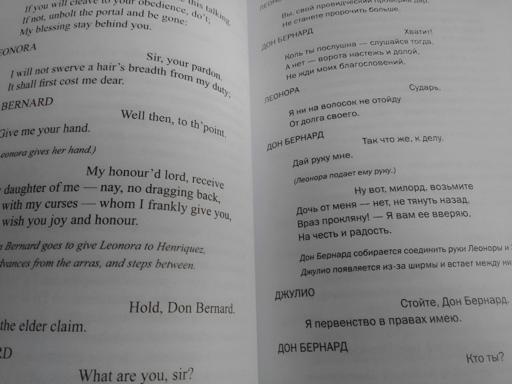 Сегодня за вечер прочитала всю русскоязычную часть, кроме послесловия. Я ни как не могу оценивать уровень перевода, потому что не знаю английского. Но чтобы гладко воспринимать пьесу как она есть на русском, нужно иметь подходящий склад ума. А у меня как раз такой. Что касается самого сюжета, то он отличается от ранее известных шекспировских пьес тем, что начался как трагедия, а закончилось (простите за спойлер) для всех всё просто лучше некуда, даже для главного негодяя, чего раньше небывало даже в комедиях.