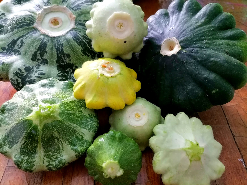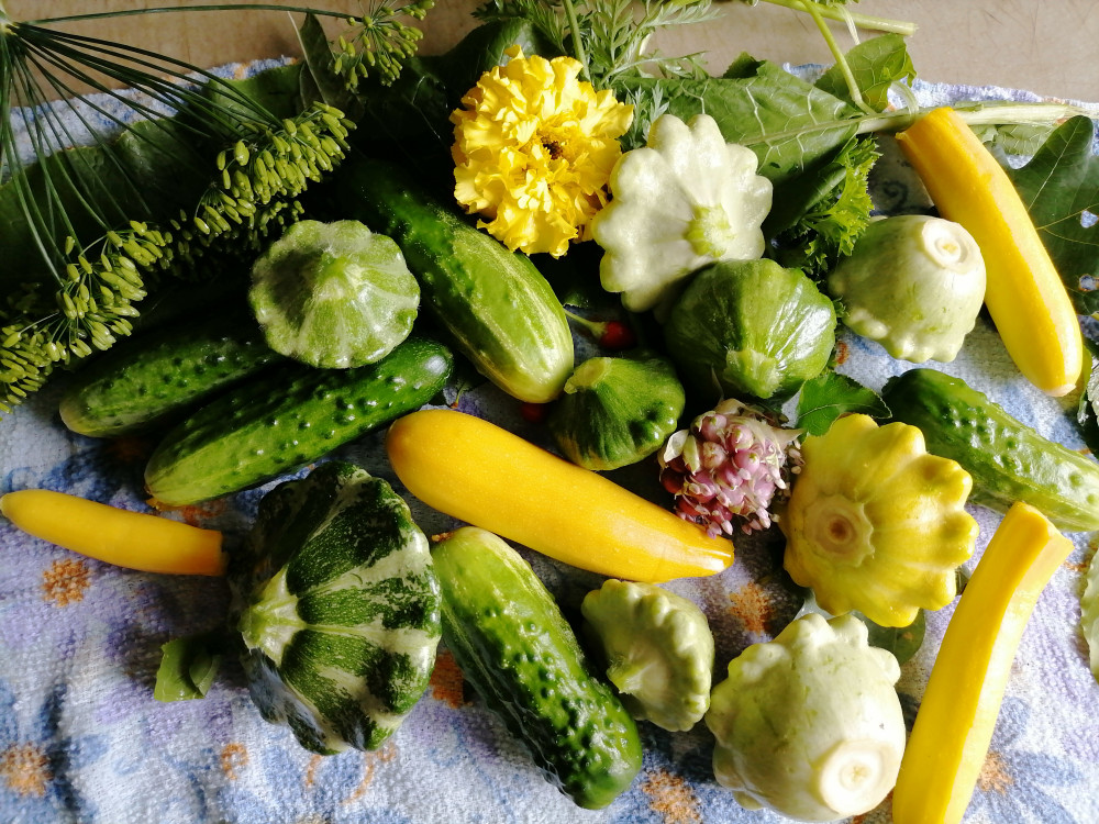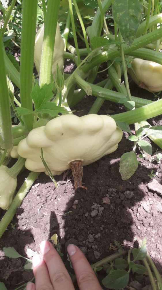 Мои "тарелочки".Начали давать урожай на 50 день примерно. Посев сразу в грунт. Много завязей. Растут высоким кустом, не плетуться. Самые вкусные пестренькие. Жареные с чесночком и укропчиком вкусняха, маринованные с огурчиками и кабачками красота)