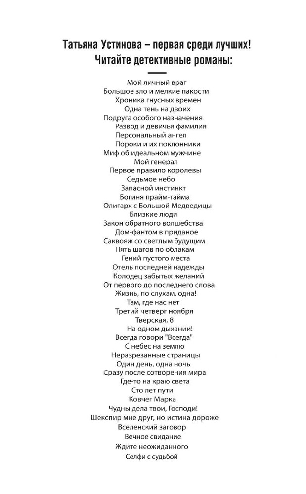 Устинова верна себе - роман неплохой, но, на мой взгляд, несколько перегружен событиями. Хотя, сюжет захватывает, и интрига сохраняется до конца. Читать интересно.