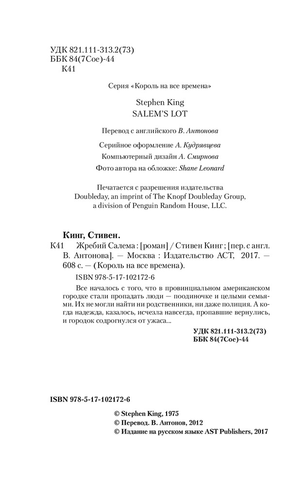 Жребий Салема-20% +69 захватывающий сюжет жуткая атмосфера стиль автора персонажи тонкие страницы