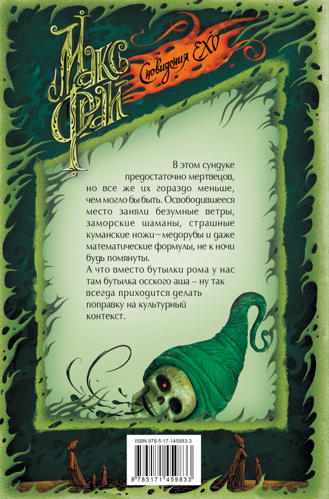 В этом сундуке предостаточно мертвецов, но все же их гораздо меньше, чем могло бы быть. Освободившееся место заняли безумные ветры, заморские шаманы, страшные куманские ножи-медорубы и даже математические формулы, не к ночи будь помянуты. А что вместо бутылки рома у нас там бутылка осского аша — ну так всегда приходится делать поправку на культурный контекст.